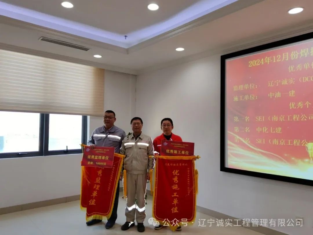 進入第四季度,對于全年而言無疑是沖刺的關鍵時期。今日,中海油寧波大榭項目部評優(yōu)大會收獲:DCC項目榮獲12月份焊接質量獎,這也是該項目部連續(xù)4個月獲得焊接優(yōu)秀監(jiān)理部,聚丙烯項目獲得2024年質量先進監(jiān)理部榮譽,實現(xiàn)了2024年完美收官!