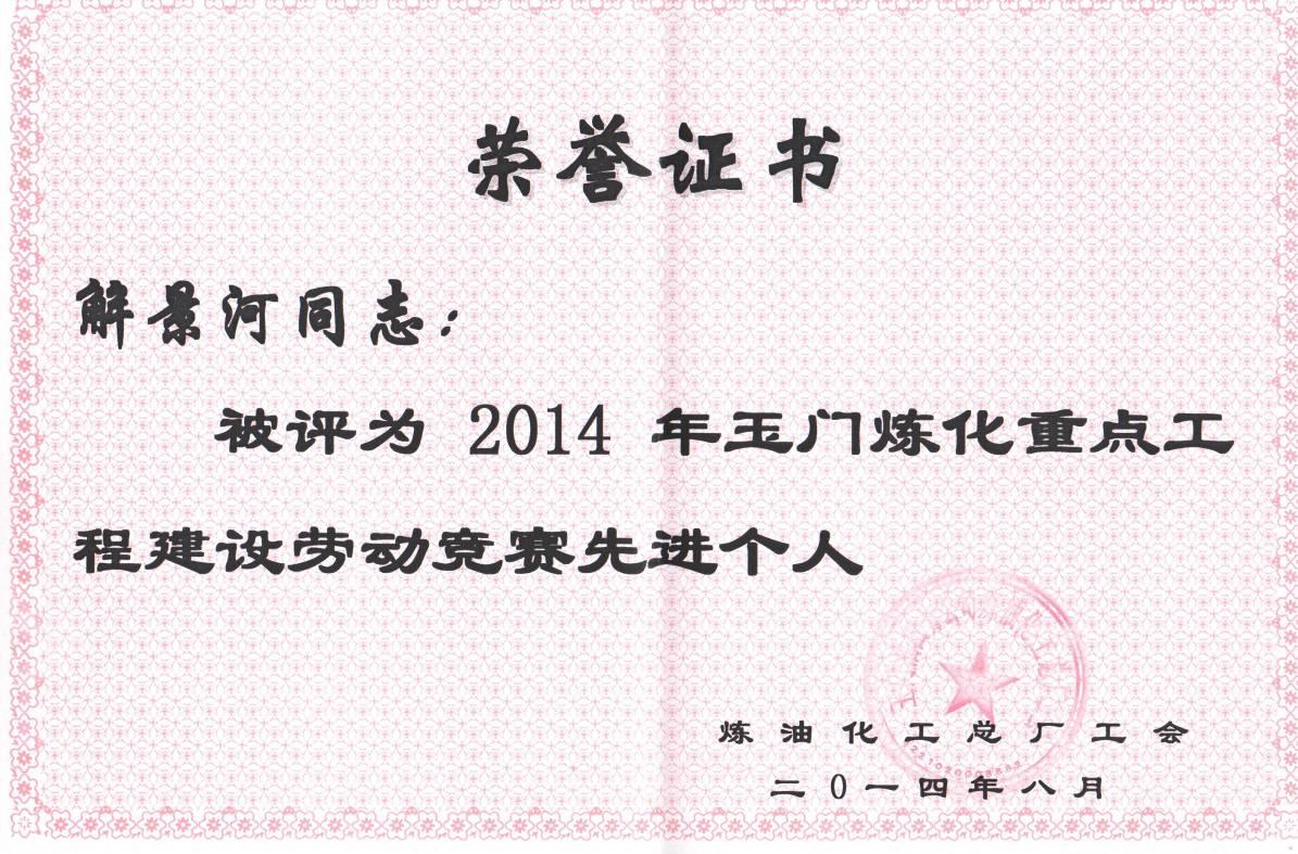 2014年是玉門油田煉化工程建設(shè)的高峰年,共有年產(chǎn)70萬噸柴油加氫精制、年產(chǎn)50萬噸延遲焦化、催化裂化裝置煙氣除塵脫硫等13個工程建設(shè)項目要完成。這些工程項目的建成,將使玉門油田煉化總廠在隱患治理、安全環(huán)保達(dá)標(biāo)、產(chǎn)品質(zhì)量升級等方面躍上一個新臺階,發(fā)展實力得到全面提升。我公司承擔(dān)玉門煉油廠重點工程項目建設(shè)的重中之重的二項工程;新建70萬噸柴油加氫精制裝置、年產(chǎn)50萬噸延遲焦化裝置,現(xiàn)有近20名監(jiān)理工程師夜以繼日的工作在施工現(xiàn)場。項目監(jiān)理部組織全體監(jiān)理人員積極投入到玉煉組織的“百日會戰(zhàn)”之中,F(xiàn)工程已取得階段性成果,預(yù)計加氫裝置9.30可以投產(chǎn)。我公司在會戰(zhàn)中表現(xiàn)突出,解景河、陳奇二位同志被評為2014年玉門煉廠重點工程建設(shè)勞動競賽先進(jìn)個人。這是玉門煉廠對我公司的信任,也是對我公司監(jiān)理工作的認(rèn)可。希望在玉門煉廠工作的監(jiān)理工程師再接再厲,努力工作,為二套裝置早日建成投產(chǎn)做出貢獻(xiàn)。