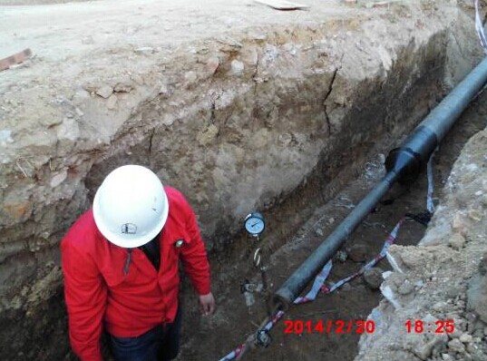 消防水管做水壓試驗,地下管網(wǎng)完成70%