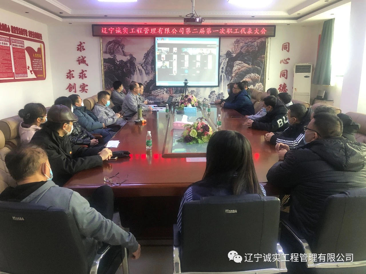 2021年2月9日早9:30在公司一樓會(huì)議室召開(kāi)了遼寧誠(chéng)實(shí)工程管理有限公司第二屆第一次職工代表大會(huì),由于工作原因,一部分職工代表無(wú)法回?fù),代表?huì)結(jié)合線(xiàn)上、線(xiàn)下共同召開(kāi)。共計(jì)40位職工代表,實(shí)到會(huì)議37位(其中線(xiàn)上17位,線(xiàn)下20位)。出席此次會(huì)議的領(lǐng)導(dǎo)有:總經(jīng)理田立奎、副總經(jīng)理任潤(rùn)東(美亞項(xiàng)目總監(jiān)理工程師)、副總經(jīng)理鄧戎龍。